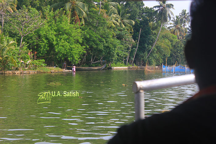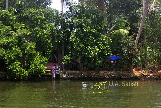 Kuttanad has a high density of population. People live at the water’s edge. As we went by, we could see them on the banks of the lake – bathing, washing clothes and doing other household chores.