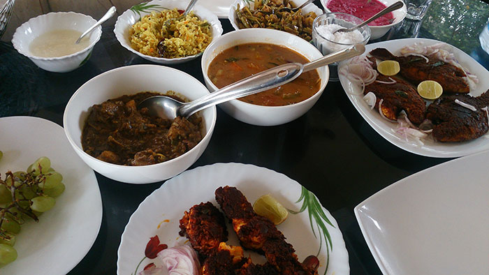 Our cruise lasted five hours. A couple of hours into the cruise, the boat stopped briefly at lakeside shop selling fish. We bought jumbo prawns which the chef cooked us. Our lunch was an elaborate affair with rice, karimeen fry and Kuttanadan duck curry. The fare also included sambhar, cabbage thoran, beetroot pachadi, pappadam, curds and pickles. A typical Kerala fare and very delicious.