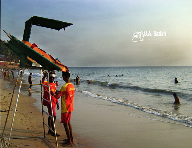 You can see life guards prominently on Bogmalo Beach. You must observe their flag warnings because there are strong currents in the sea.