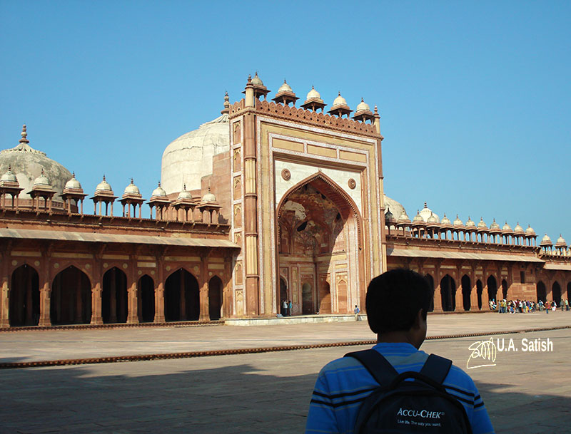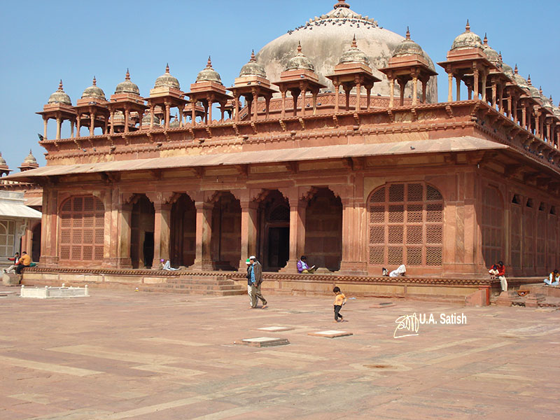 Fatehpur Sikri is 36 km from Agra. It was the capital of Emperor Akbar in the late sixteenth century. During his reign, the Mughal empire tripled in size and wealth. He constructed many palaces, mosques and buildings in Fatehpur Sikri which are his architectural legacy.