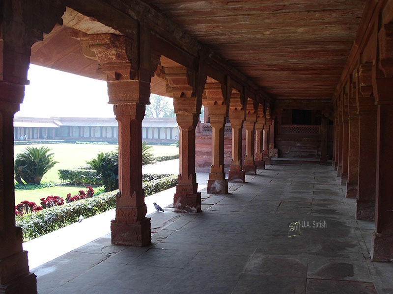 Akbar had three wives- Hindu, Christian and Muslim. Jodha Bai was reportedly the favourite wife of Akbar. She was a Rajput princess and the mother of Jahangir, Akbar’s eventual successor. Her palace is the largest in the Imperial harem. The gateway on the eastern side is magnificent. There are a number of Hindu motifs in the palace.
