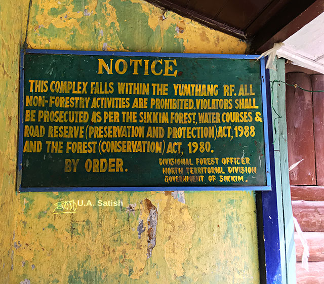 One of the best known hot springs in Sikkim is near Yumthang village. The waters have elevated temperatures, close 50 deg C, even in winter. The sulphur content is high. There are other minerals like calcium, lithium and magnesium that are dissolved in the waters. They are believed to have medicinal values.