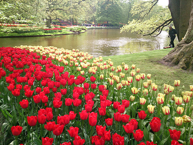 Keukenhof has nearly 100 royal exhibitors who supply their best spring flowers for display. The landscape architect creates a unique design for each of the exhibitors. The exhibitors deliver their bulbs in autumn for planting. Incidentally, Netherlands is a major flower exporter.