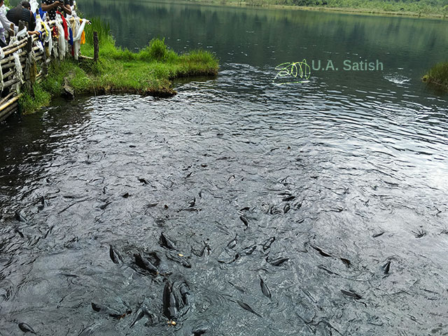 The lake is brimming with fish. Locals do not eat the fish. They believe that the lake is holy and consuming the fish is taboo.