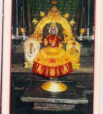 The main deity is a jyotirlingam. A golden line cuts it in half. The left half embodies the Tridevis while the right half stands for the Trimurtis. The belief is that Mookambika Devi has merged with this lingam. Devotees most of the time see the panchaloha idol of Goddess Mookambika inside the sanctum sanctorum. The jyotirlingam is placed exactly in front of the idol of Goddess Mookambika. A golden shield usually covers the jyotirlingam.