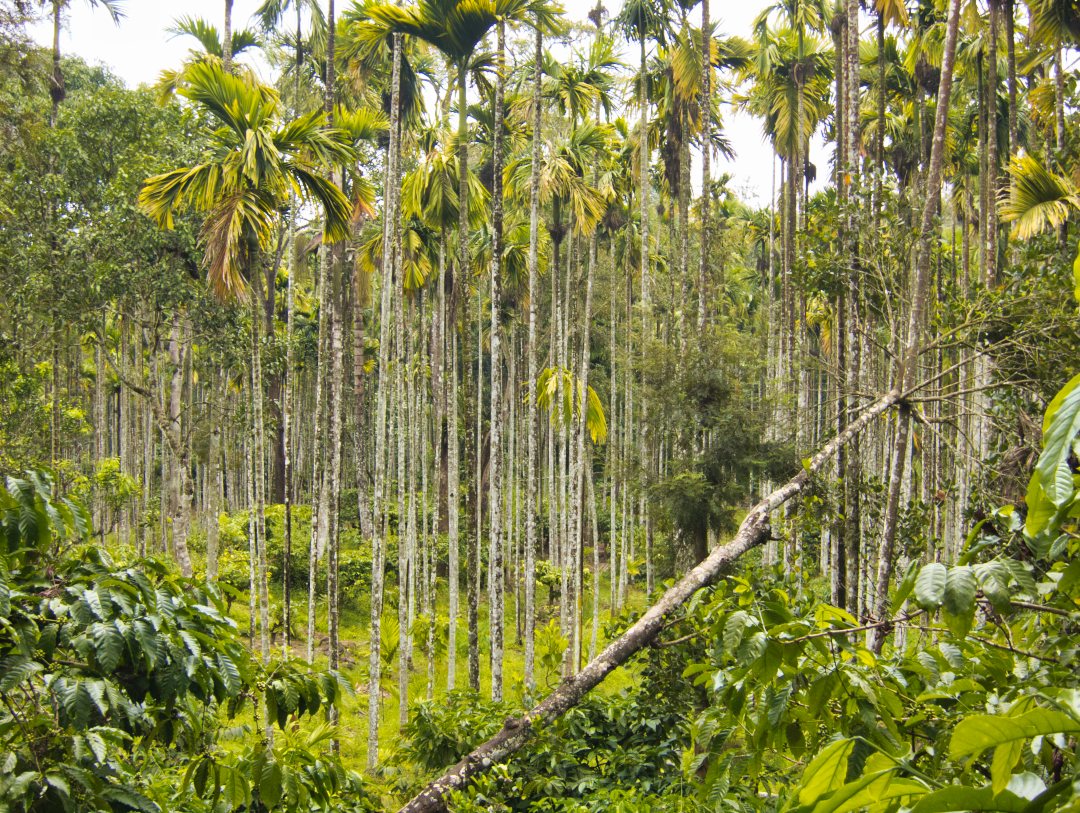 Facing the temple was a field full of areca nut trees. Areca nuts are chewed with betel leaves for their effect as a mild stimulant. It is also used in the preparation of certain ayurvedic medicines.