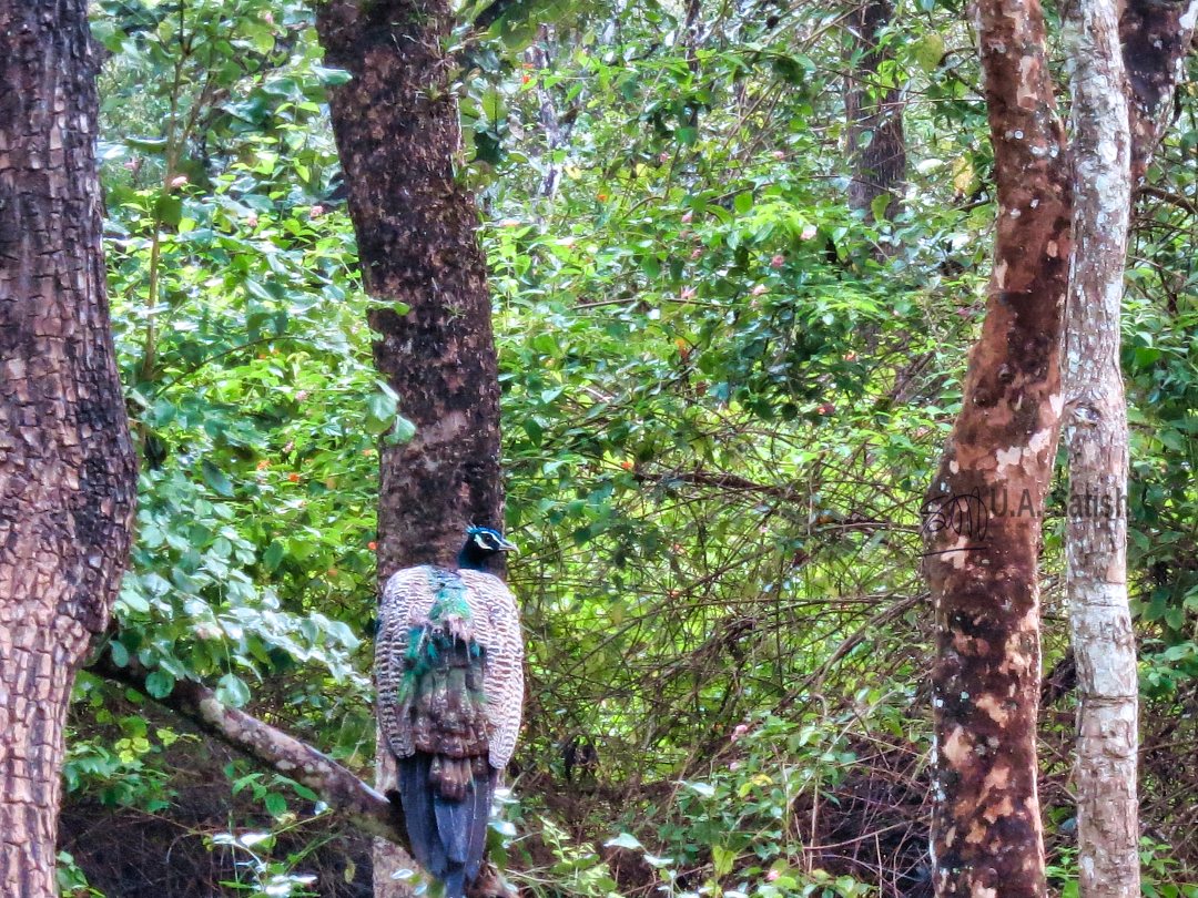 Muthanga Wildlife Sanctuary was a unique experience. It is on the Kozhikode – Mysore highway, an hour’s drive from Kalpetta (36 km). The sanctuary is open from 7 to 10 in the morning and 3 to 5 in the evenings. There is an entry fee of Rs. 500 and we went on an hour’s drive through the forest in a jeep. Outside vehicles are not allowed inside. The roads are uneven and the ride was bumpy at times. There was a forest guide with us in the open vehicle and he kept a lookout for wild animals and birds. The guide pointed out fresh pug marks of a tiger. But the tiger was elusive,