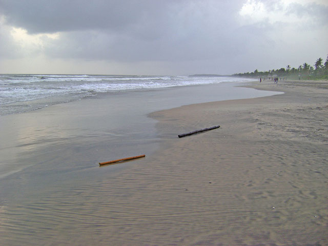 During the rainy season, the sea can become rough. The fishermen then do not go out into the sea. The beach wears a deserted look.
