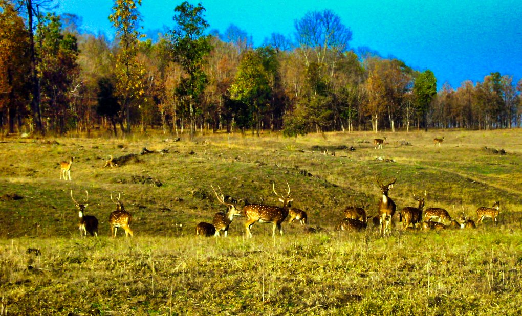 The park has large areas of teak forest. Thickets of bamboos were everywhere.. Evergreen trees like mango and Jamun give shade. Another notable tree is the mahua. The tribals use its flowers to brew liquor. The rolling meadows of grass and grassy plateau are nice to see.