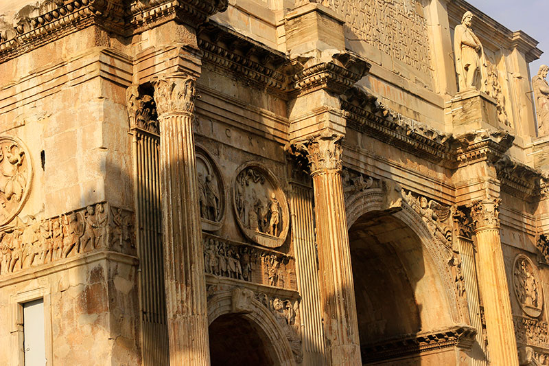 This is the largest and best conserved of all triumphal arches in Rome. The Senate and Roman people built it in 315 to honour Emperor Constantine on his victory in the Battle of Milvian Bridge in October, 312. The battle took place between the Roman Emperors Constantine I and Maxentius on 28 October 312. Maxentius drowned in the Tiber during the battle. Constantine went on to become the sole ruler of the Roman Empire.
