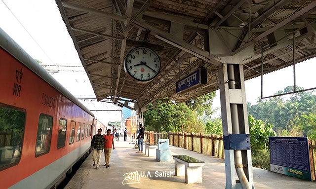 The first stop after leaving Vasai Road is Panvel. After that, the train halts at Roha. Konkan Railway begins here and continues till Mangalore. The landscape is scenic with mountains, creeks, rivers, valleys and rice fields. The Konkan line passes through 91 tunnels. Karbude Tunnel near Ratnagiri stretches for 6.5 km. This tunnel is on Konkan Railway.