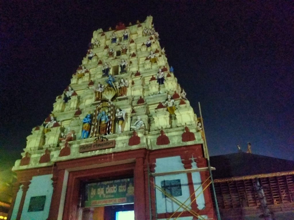 Chenna Keshava shrine is at the rear of the sanctum. The Lord holds shanku, chakra, gadha and lotus in his hands. Behind this is the eastern entrance of the sanctum which is open only on Vijayadashami day. Devotees are able to watch pooja ceremonies live on large tv screens.