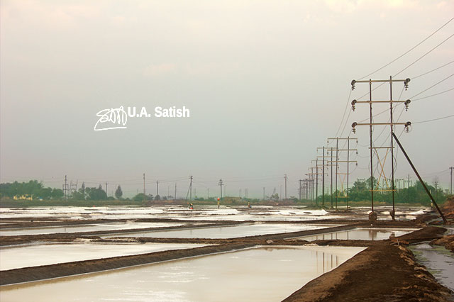 Workers from villages of Gujarat, Maharashtra and Bihar operate the salt pans. The workers start their work early in morning to escape the intense heat from the sun. Salt production stops for four months in a year during the monsoon season.