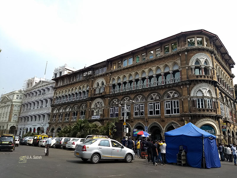At Horniman Circle is Elphinstone Building which is a fine specimen of Venetian-Gothic architecture. Reinzi Walton designed it in late nineteenth century. It has an appealing facade with different stone facings. The sandstone building has arcaded walkways and verandahs. On the ground floor is a Starbucks store.